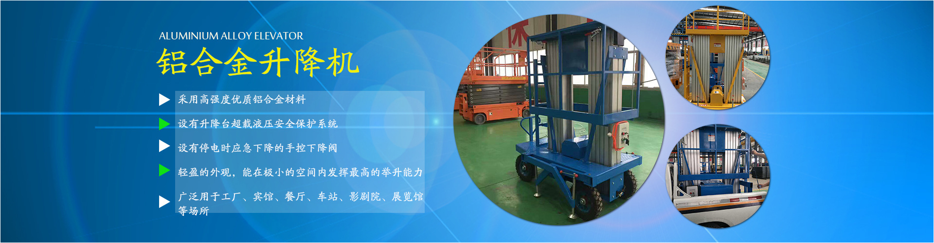 公司主要經營:液壓貨梯、升降平臺、搬運車、叉車及各種液壓設備等。并承接升降平臺出租業(yè)務。 產品廣泛用于:港口、電力、鋼鐵、造船、石油化工、礦山...